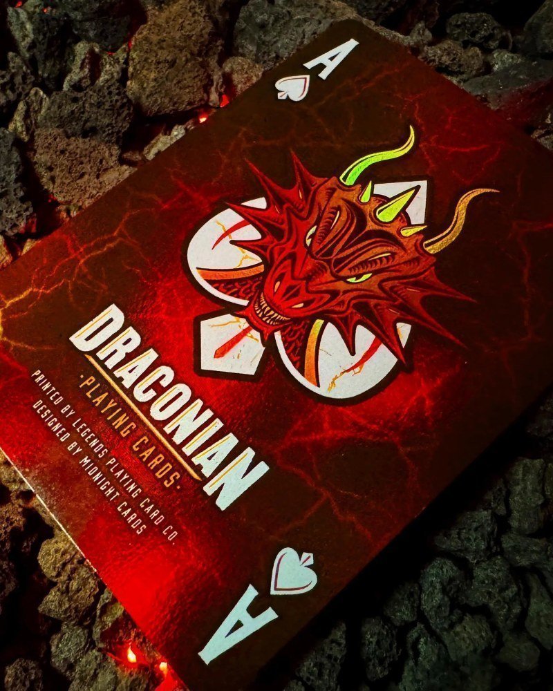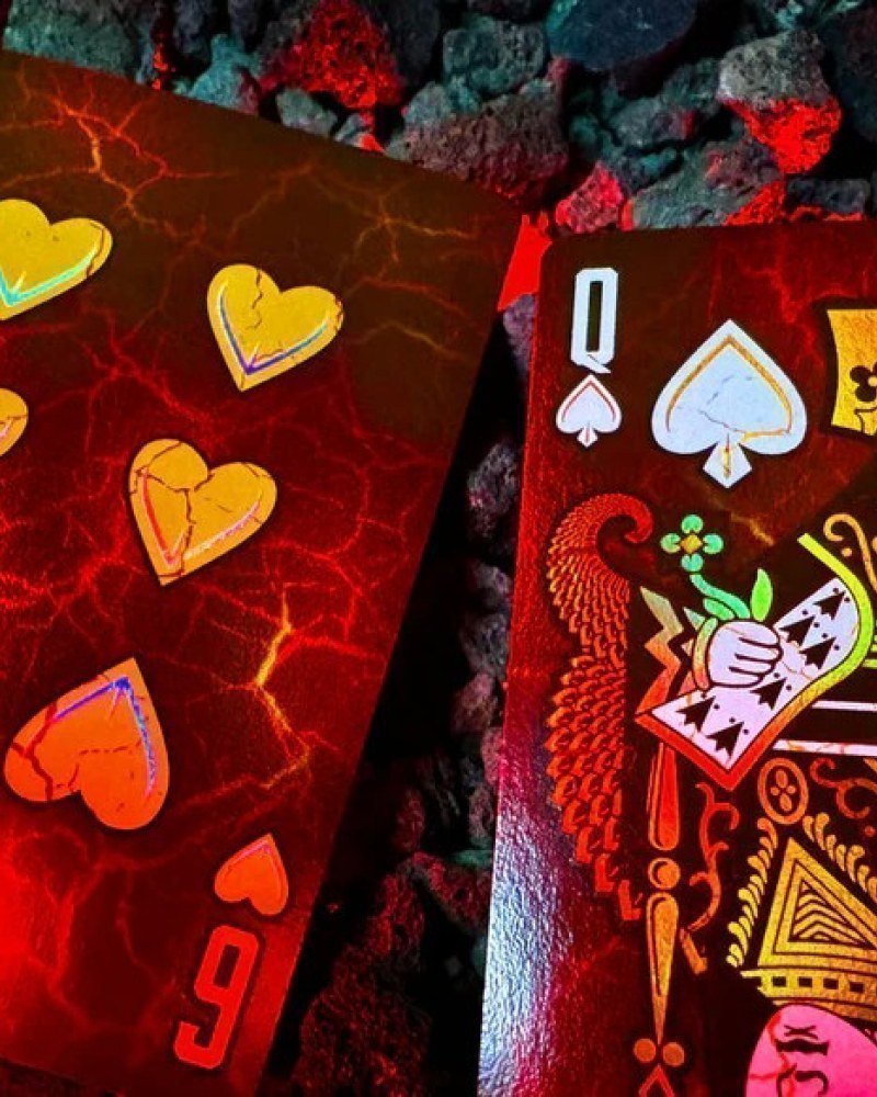 Gedruckt von Legends Playing Card Co. auf holografischem Material für Vorder- und Rückseiten, bietet es eine beeindruckende visuelle Wirkung. Die ULTRA RED Kanten bestehen aus neu entwickeltem, durchgefärbtem Papier und nutzen sich nicht ab.