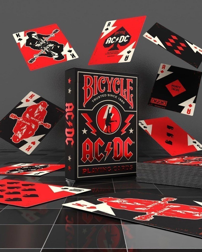 Die Bicycle AC/DC Spielkarten sind eine Hommage an die legendäre Rockband und perfekt für Fans, Sammler und Kartenspieler.
