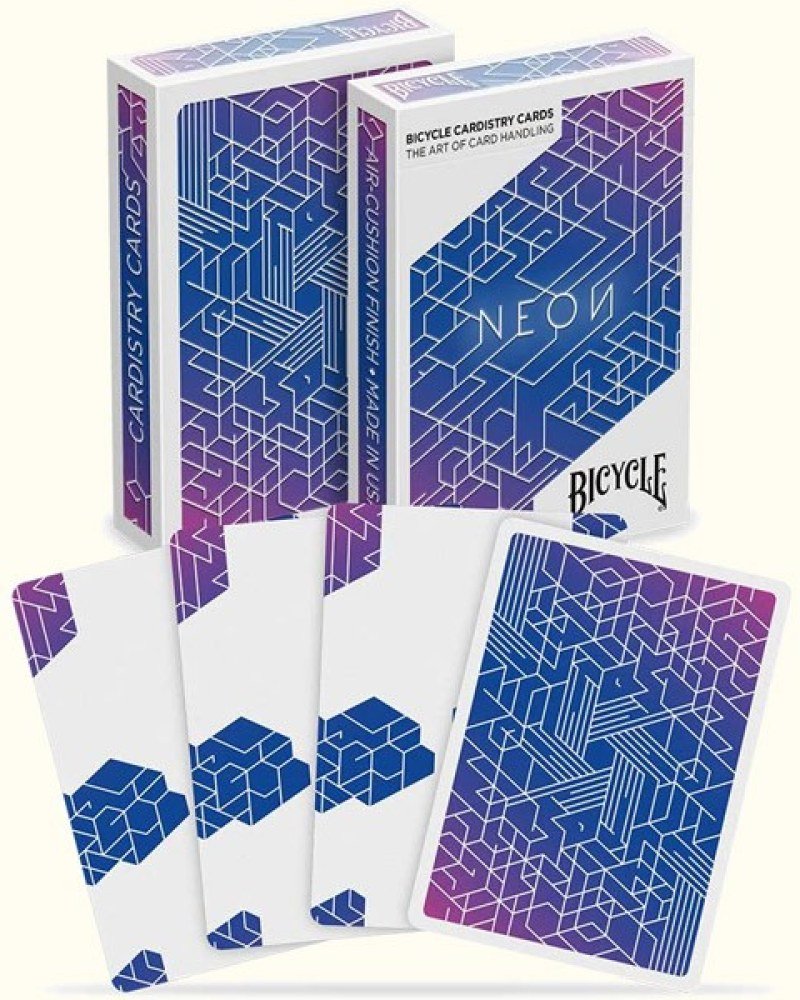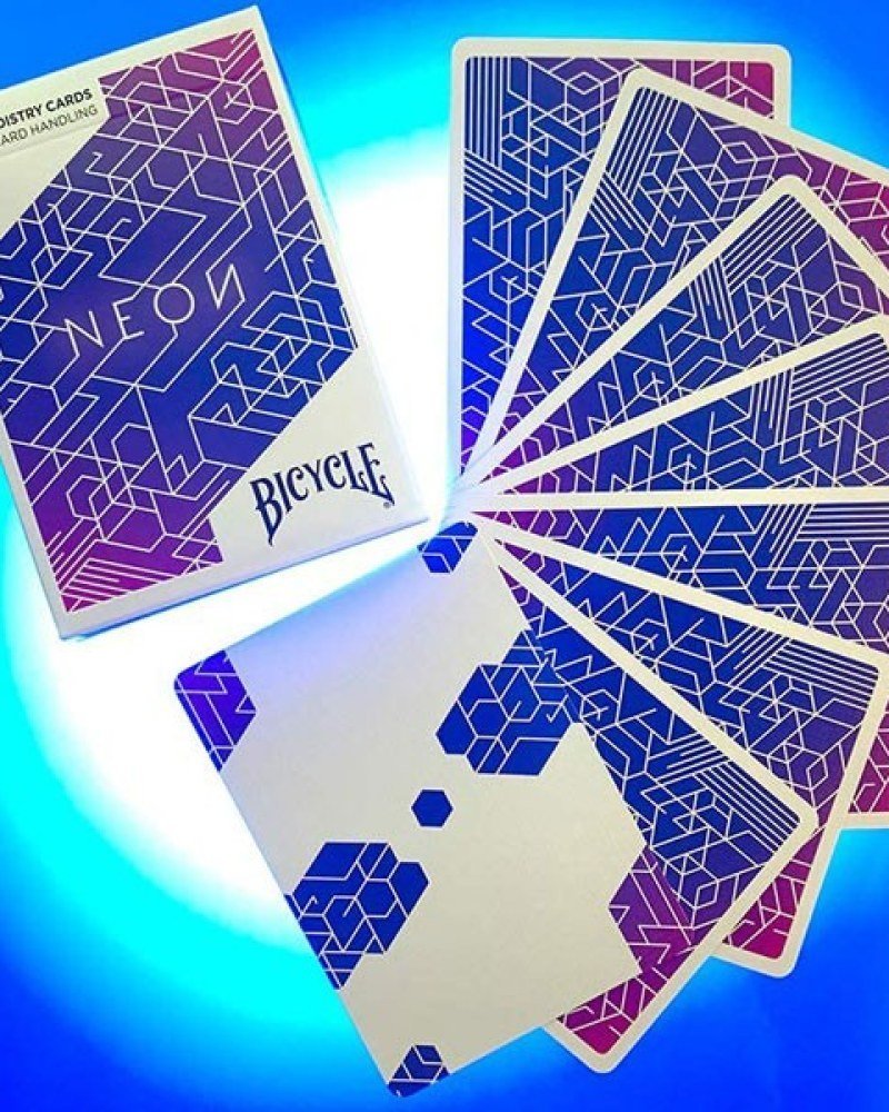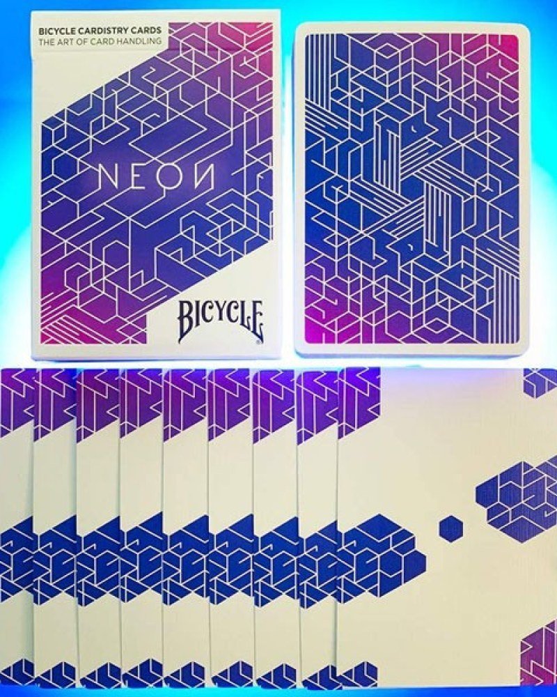 Mit nicht standardisierten Kartenrückseiten ohne Zahlen und Symbolen sowie einem leuchtenden Neon-Design ermöglicht es einzigartige Flourishes, Fächer und Verteilungen.