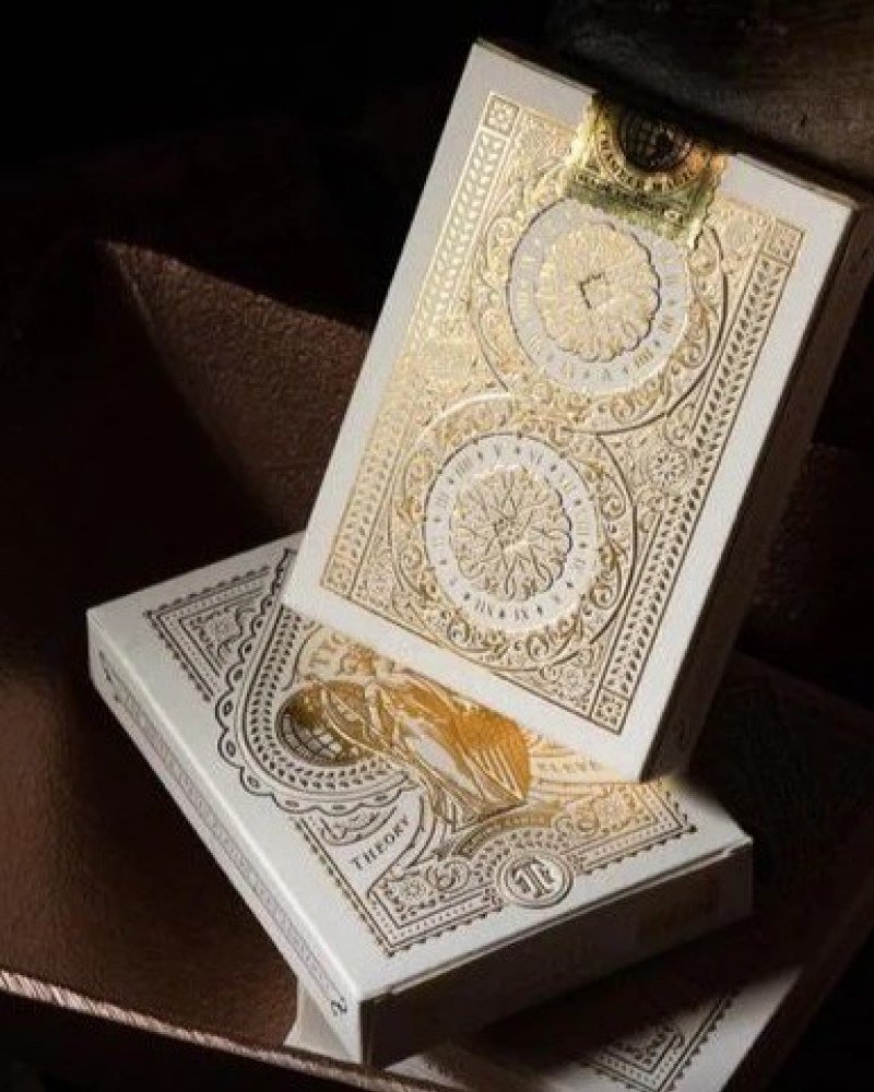 Das Deck besticht durch hochwertige Designelemente, inspiriert vom prestigeträchtigen Waldorf Astoria in New York, mit filigranen Details von der Schachtel bis zum Kartenrücken, inklusive Goldfolie und Metallic-Tinte.