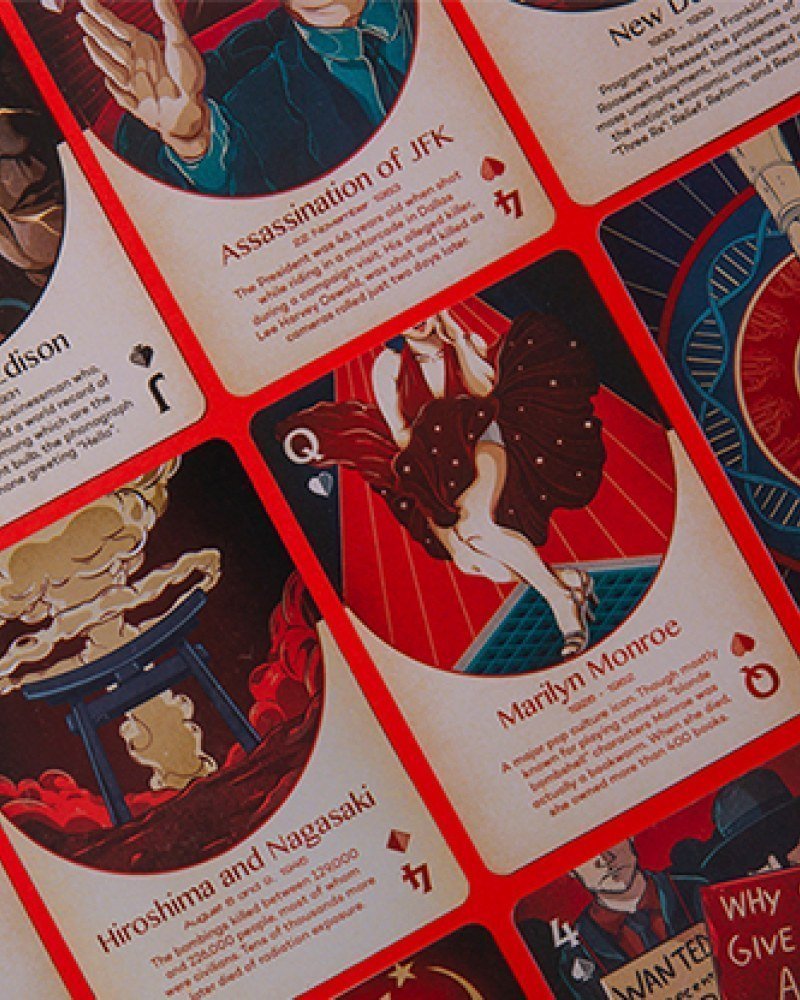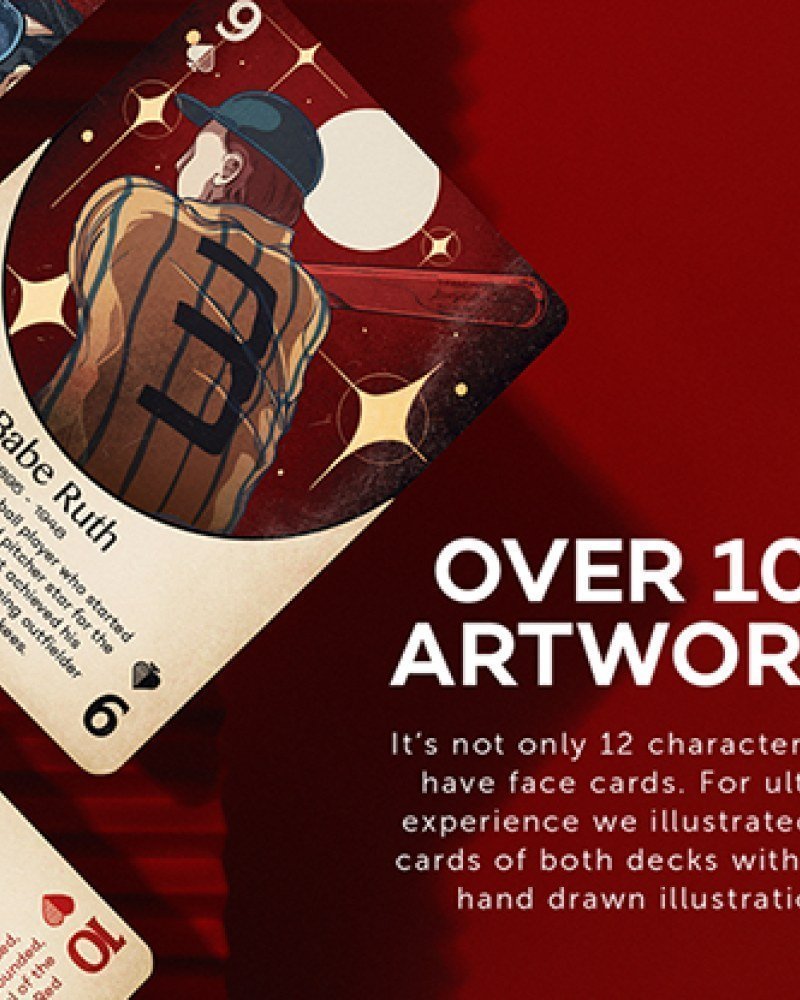 • 54 cartas exquisitamente diseñadas que representan décadas de patrimonio americano