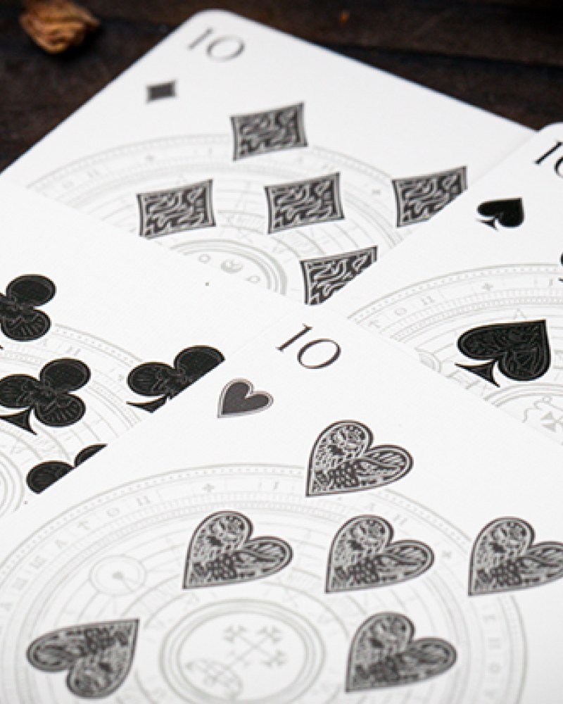 Les cartes à jouer Riffle Shuffle Keys of Solomon Silver Spirituum vous plongent dans un univers où le mysticisme rencontre l'artisanat haut de gamme.