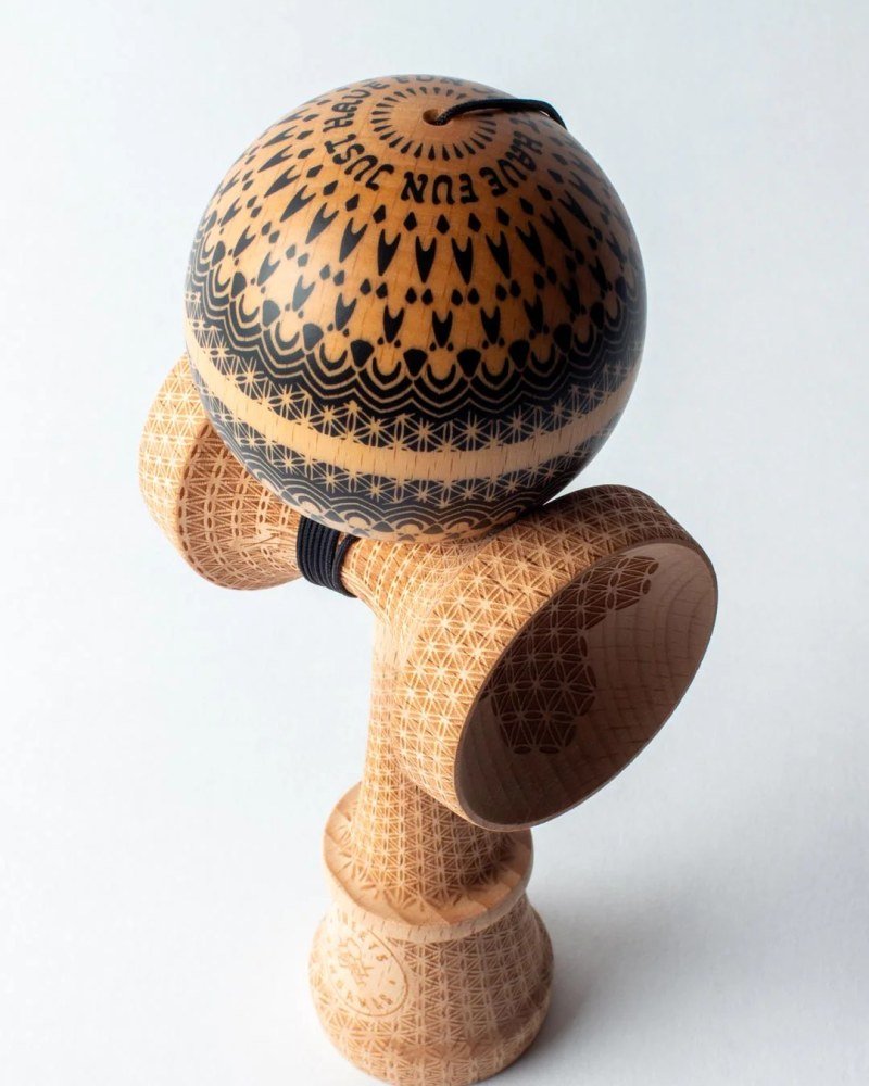 Ce modèle présente un design inspiré de la géométrie sacrée et des tatouages personnels de Boo, créant un kendama visuellement spectaculaire et riche en détails. Les gravures complètes sur le ken offrent une esthétique unique qui reflète le style artistique du joueur.