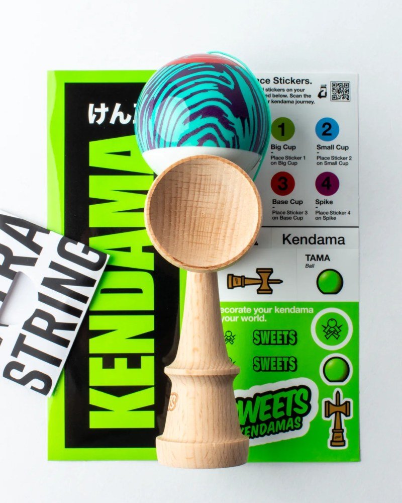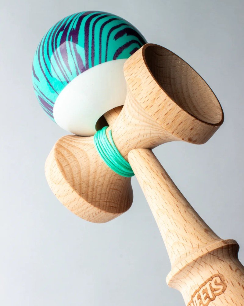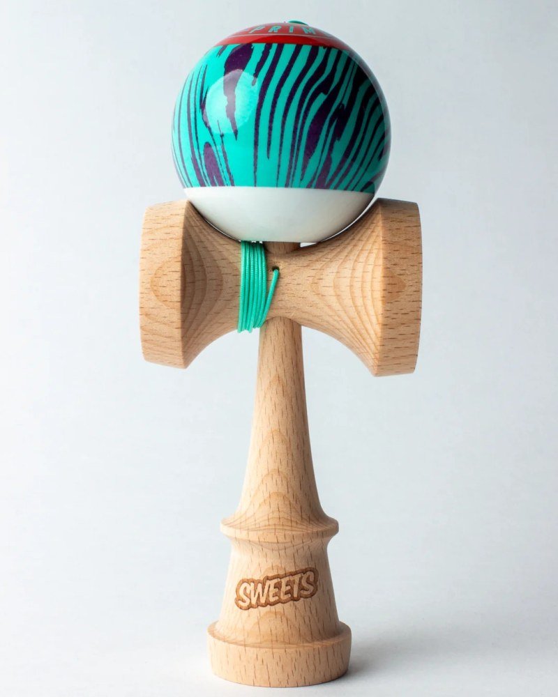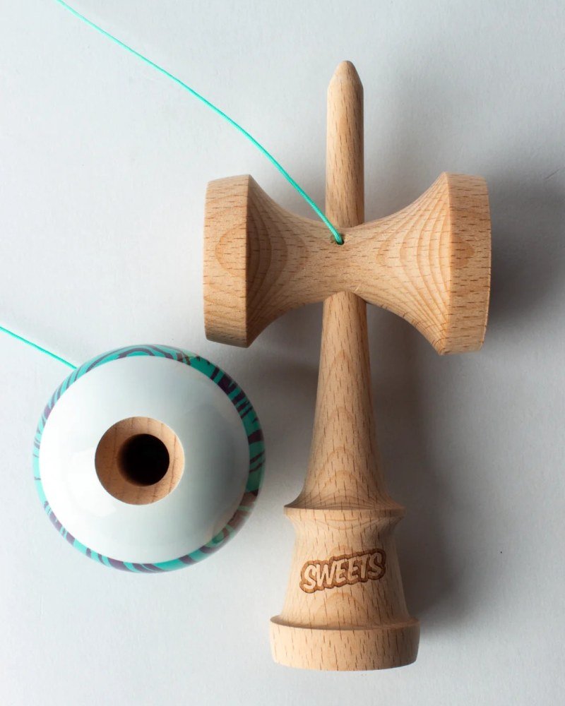 Le Sweets Kendamas Prime Grain Split 2.0 Laser Tag présente l'un des designs les plus emblématiques de Sweets Kendamas, inspiré par la beauté naturelle du grain du bois. Le motif Grain Split divise la tama en deux moitiés combinant peinture et bois naturel, créant un contraste visuel qui facilite le suivi lors des figures.