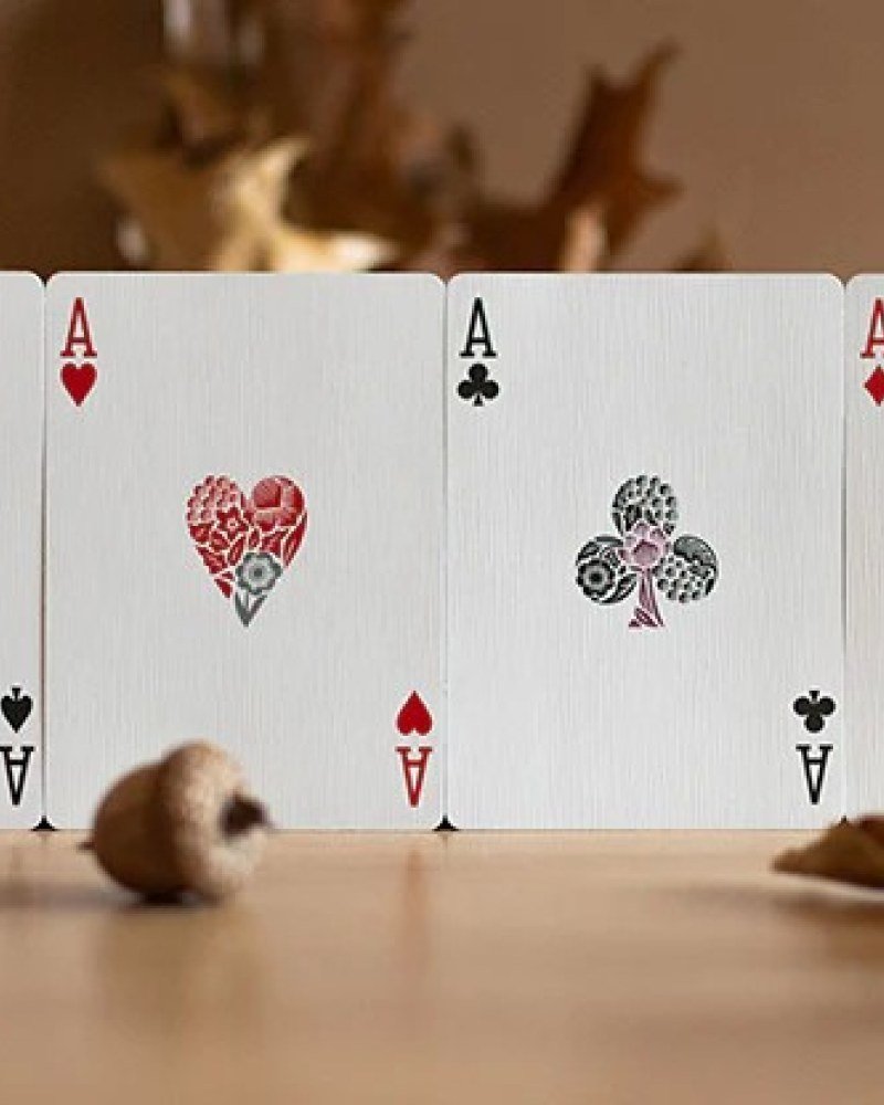 Ispirata ai caldi colori dell’autunno, questa edizione presenta figure, Assi e Joker personalizzati, oltre a una carta double-backer. Il mazzo è completamente segnato con il sistema di marcatura di terza edizione, perfetto per routine di magia avanzate. Le istruzioni del sistema di marcatura non sono incluse.