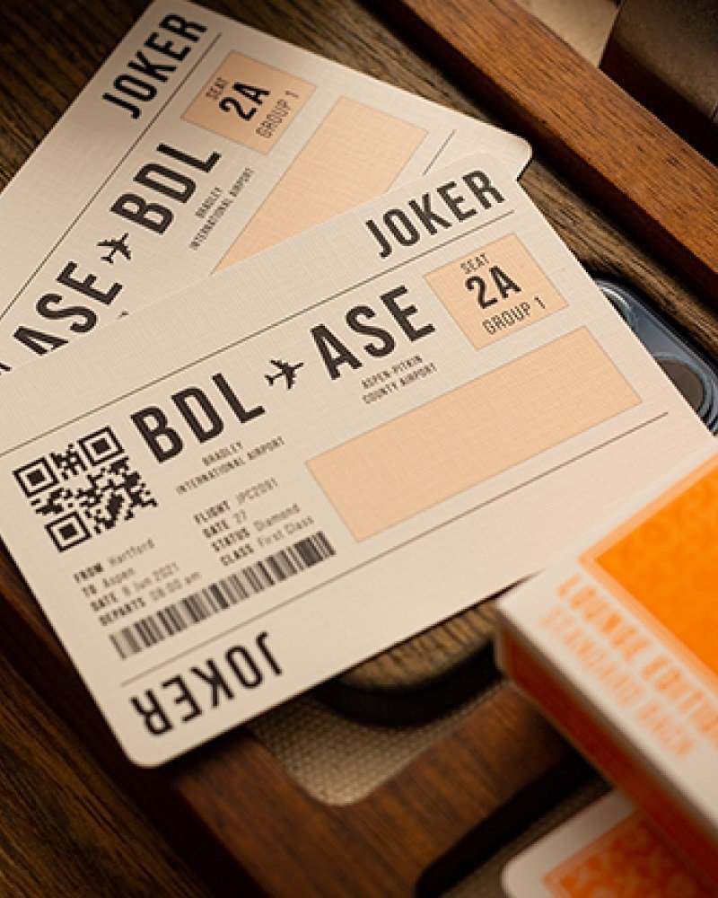 Le carte Jetsetter Lounge Edition Hangar Orange uniscono un fascino vintage a un design moderno, ispirandosi ai mazzi classici di casinò e compagnie aeree.