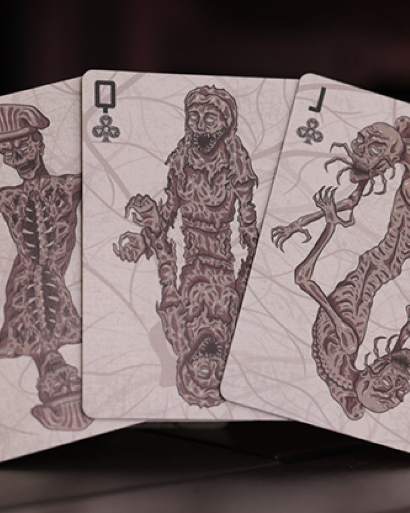 I dorso delle carte raffigurano la minacciosa porta dell'oblò e l'ultimo rifugio dell'umanità, rivelando terrificanti trasformazioni mostruose causate da un virus spaziale mortale.