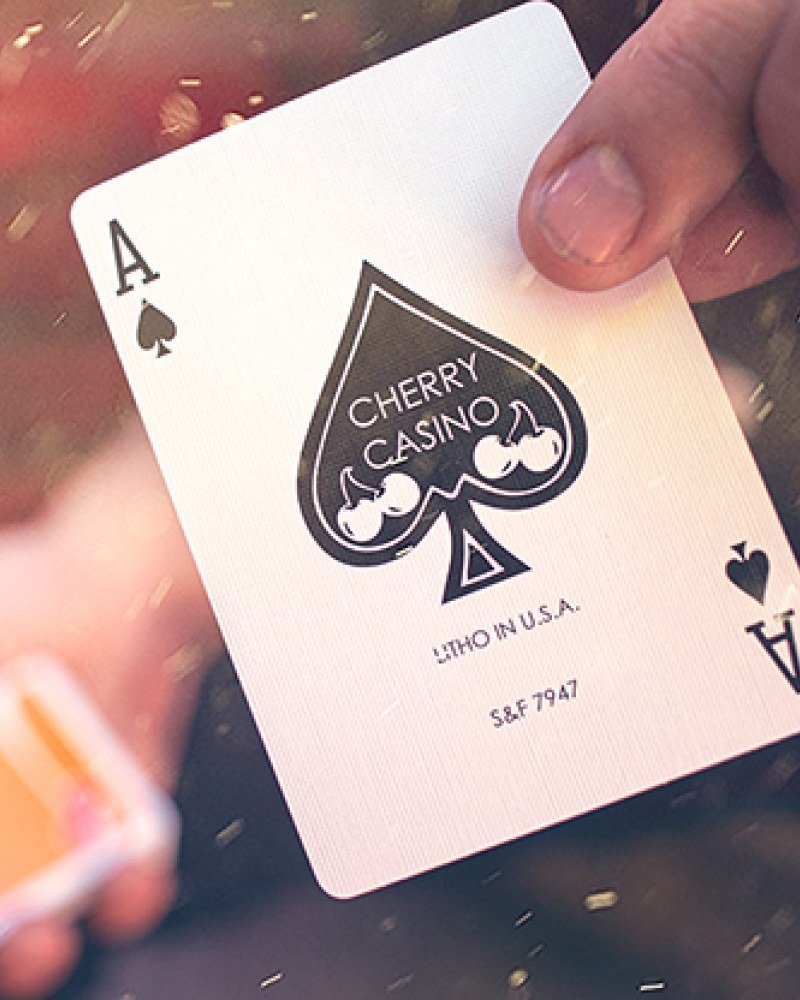 Este baralho de edição limitada apresenta uma caixa clássica com borda branca retrô, mantendo a estética icônica do Cherry Casino.