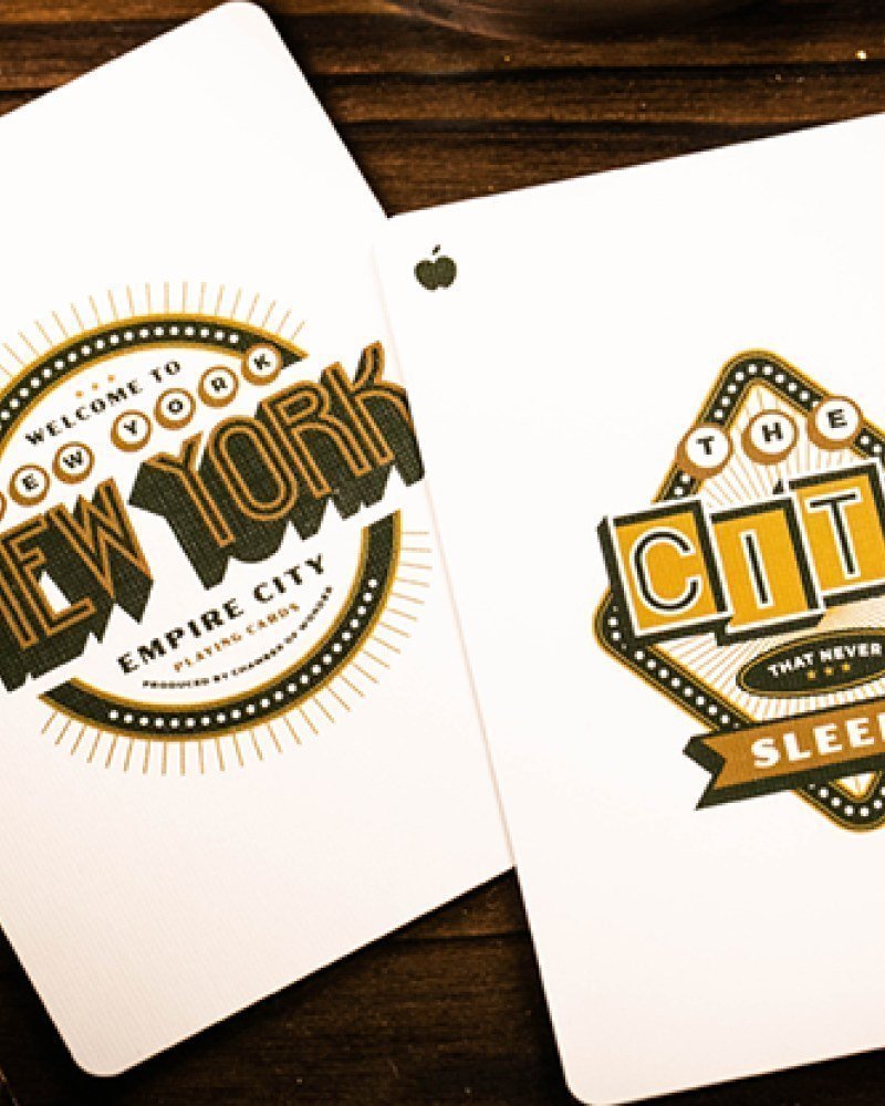 O baralho Empire City Brooklyn Twilight captura a essência do icônico horizonte de Nova York, com edifícios como o Empire State, Chrysler e a Estátua da Liberdade.